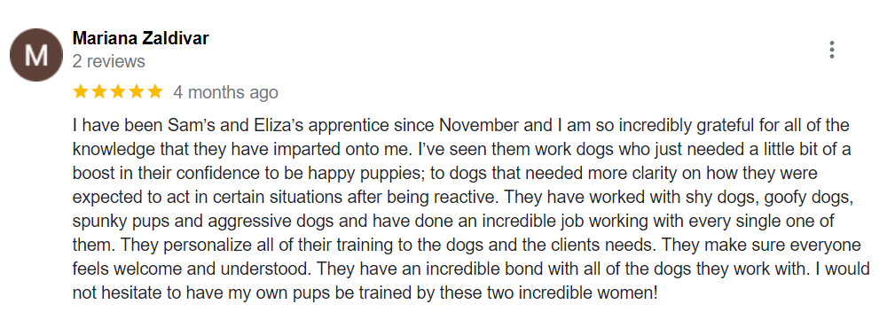 First, we aren't like any other dog training or dog behavior business. Our programs are completely customized based on your dog's current situation, and your relationship/behavior goals with them. We don't train every dog the same because not every dog is the same, and that's the beauty of it!